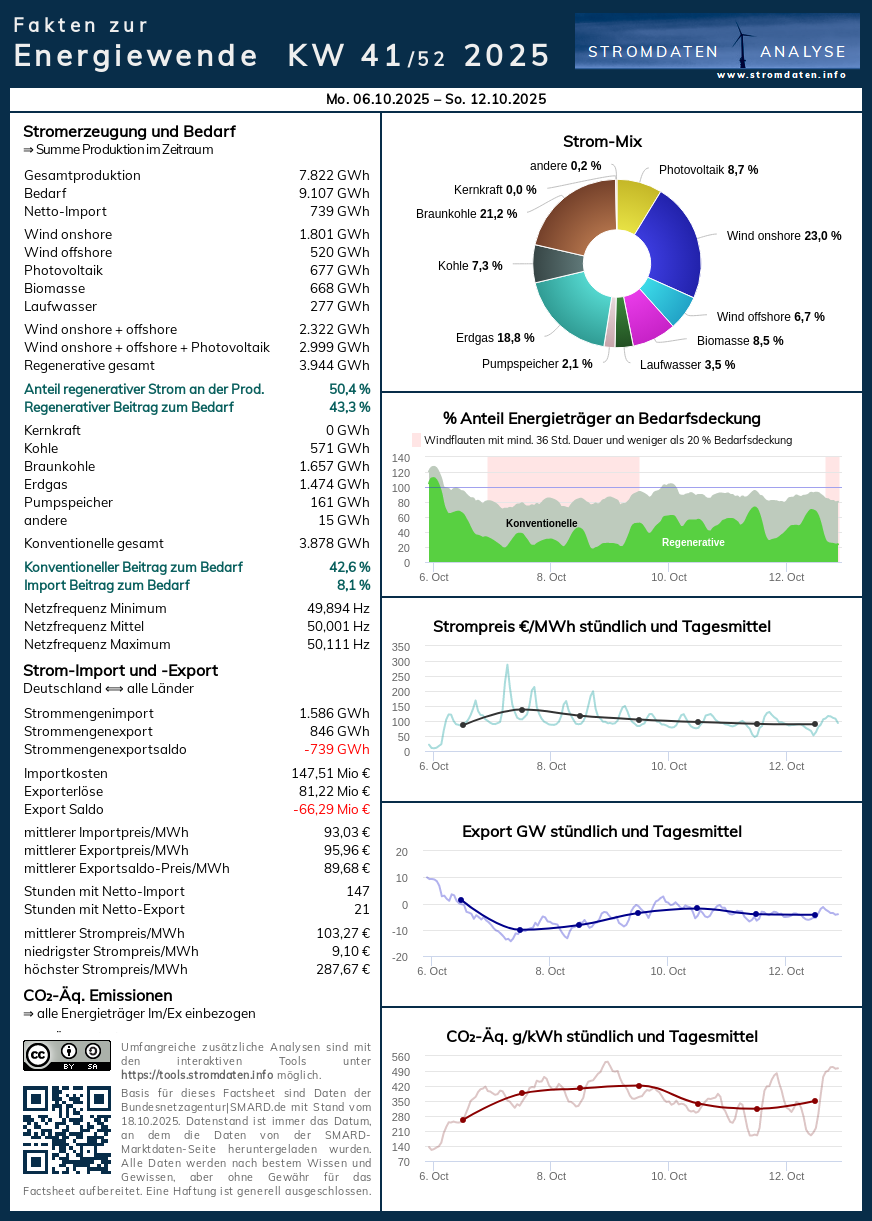 Belege für Werte und Aussagen im Text oben, viele weitere Werte sowie Analyse- und Vergleichsmöglichkeiten bietet der Stromdateninfo-Wochenvergleich zur 41. Analysewoche ab 2016.